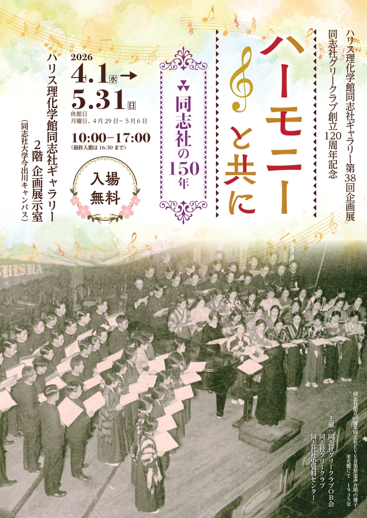 第38回企画展・同志社グリークラブ創立120周年記念『ハーモニーと共に—同志社の150年—』